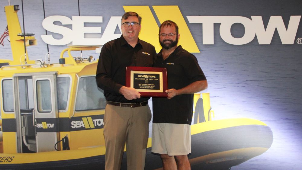 The Shipmate Award recognizes franchisees who embody the ultimate attitude of teamwork and take action to put the brand first, encouraging teamwork and patience for the greater good of the Sea Tow network. This year’s award was presented to Owner and Captain Ramsey Chason of Sea Tow Rhode Island and Sea Tow Cape and Islands, Owner and Captain Patrick Lamb of Sea Tow Clearwater/Port Richey, and Owner and Captain John Ward of Sea Tow Destin and Sea Tow Pensacola.